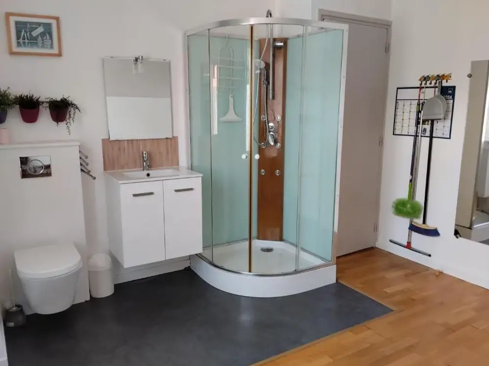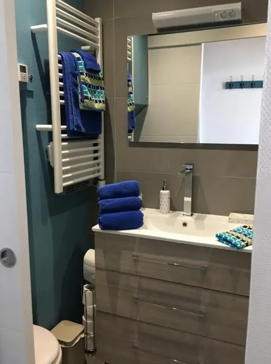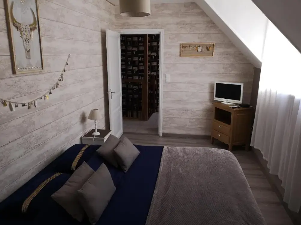 More information about Enclos de l'EvêchéAppartement Calme Et Lumineux offers a peaceful and bright living space situated at 45 Rue de la Feterie, 59320 Radinghem-en-Weppes, France. Guests praise its quiet environment and comfort, noting the spacious layout and well-maintained facilities. The apartment features a large bathroom and a comfortable bed, along with a sizable television.